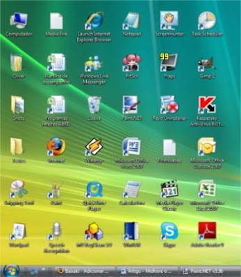 Limpe a área de trabalho: é, infelizmente você terá que tirar a foto do seu porquinho-da-índia e usar uma cor qualquer, ao invés da imagem. Computadores com memória muito limitada não podem se dar ao luxo de utilizar papéis de parede. Ícones demais no desktop também podem deixar tudo mais lento. Pode parecer lenda, mas é verdade: quanto mais coisas na área de trabalho, mais trabalho é dado ao processo do “Explorer.exe”, que é o “programa” central do sistema operacional.