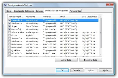 Inicialização: os grandes vilões do boot do Windows são os programas que se instalam na Inicialização do Sistema sem autorização prévia. Esses metidos acham que são muito importantes e, por isso, podem ser iniciados junto com o sistema, sem perguntar a quem devem: o usuário. No Menu Iniciar, exclua sem dó qualquer atalho que esteja dentro da pasta “Iniciar”, ou “Inicializar”. Uma maneira ainda mais agressiva é abrir o comando Executar e digitar o nome MSCONFIG. Na aba “Inicializar” ou “Inicialização de Programas”, desmarque todos aqueles que não precisam ser executados. Mas tenha certeza do que está fazendo, pois não é interessante desligar o antivírus ou programas realmente úteis, como processos necessários do Windows. *Você precisará reiniciar o computador para que as alterações acima tenham efeito.
